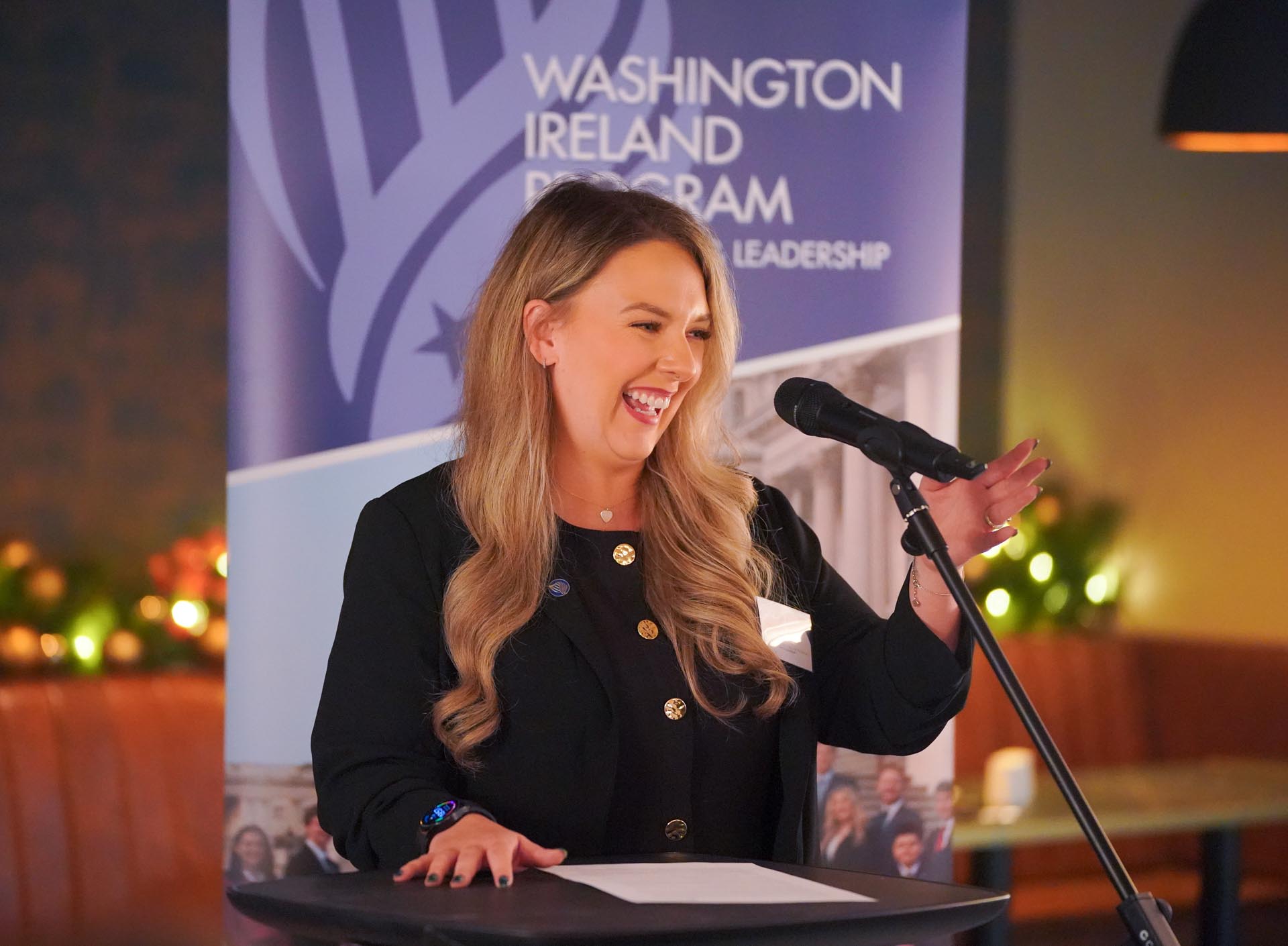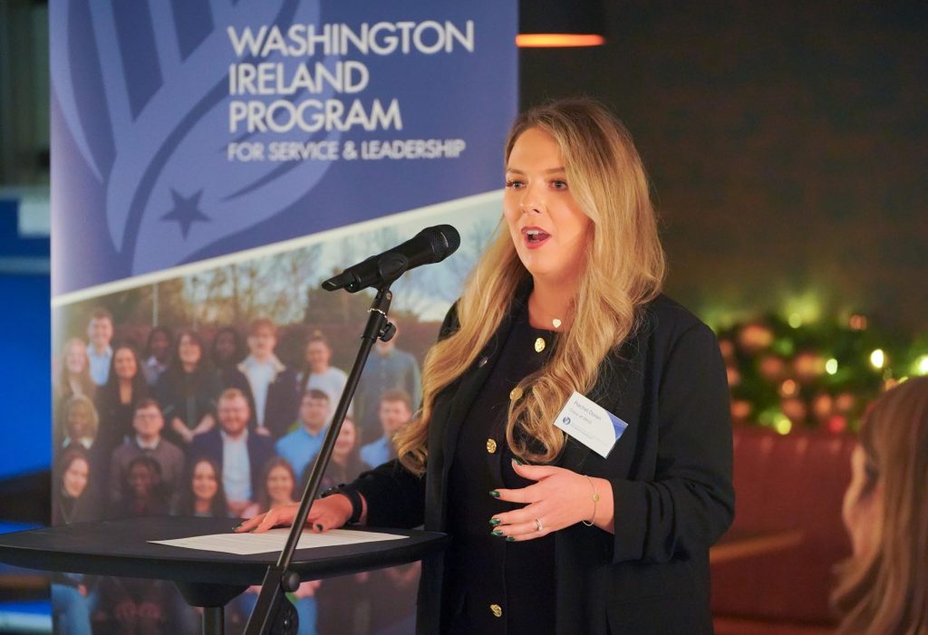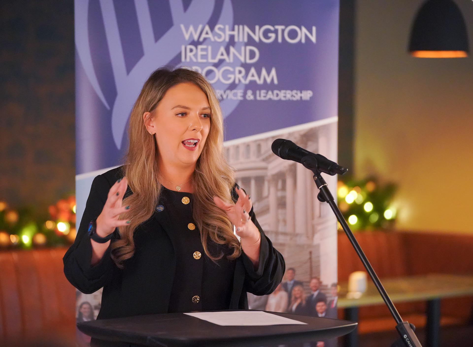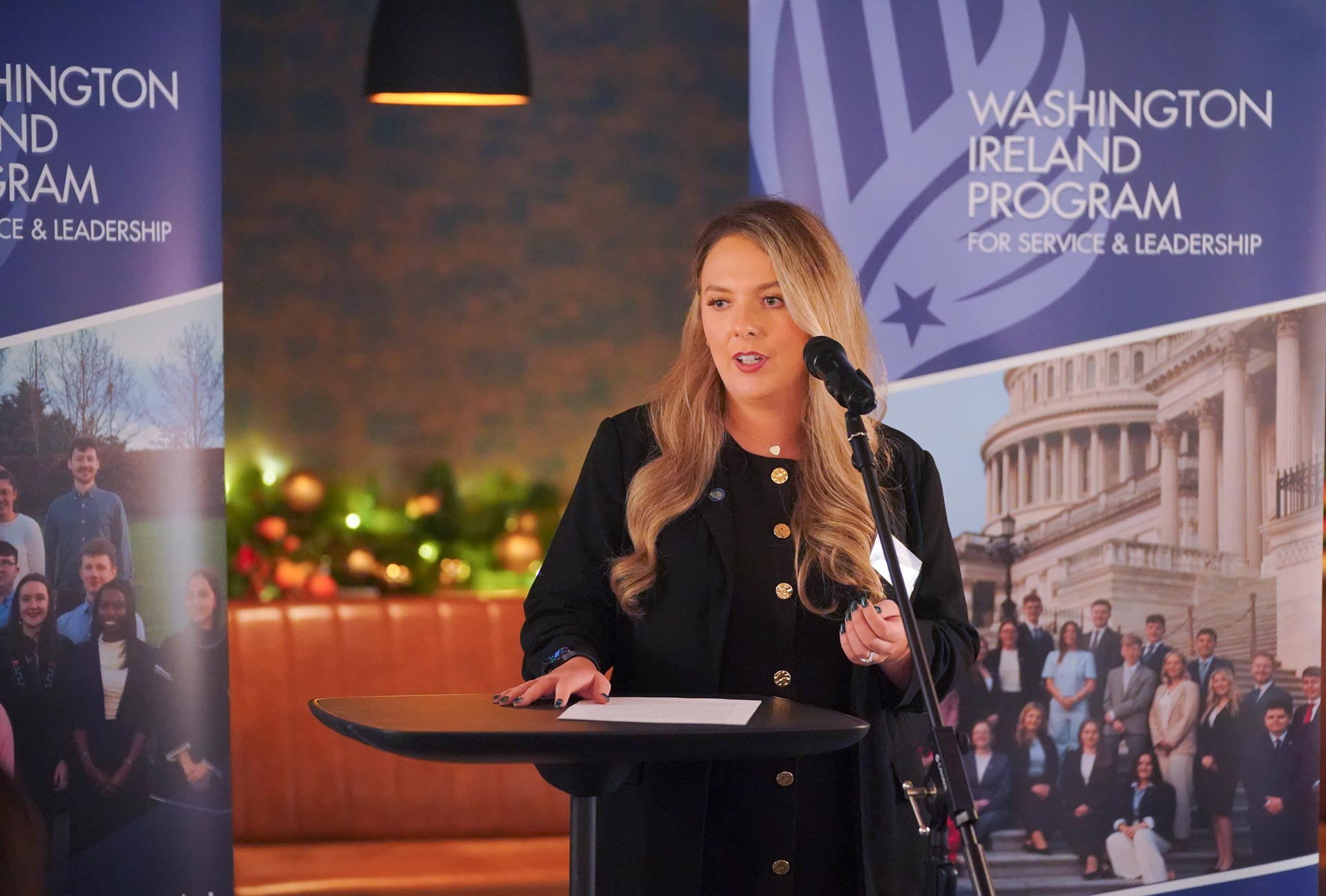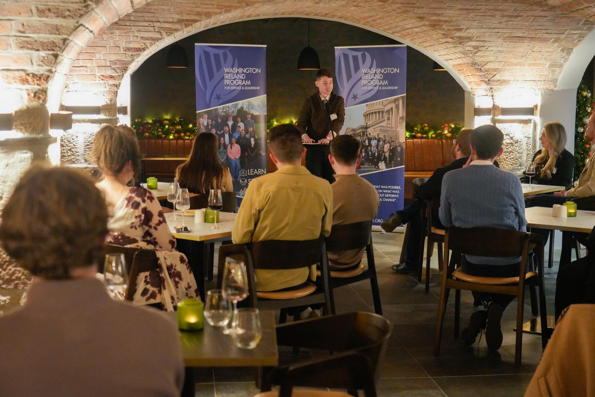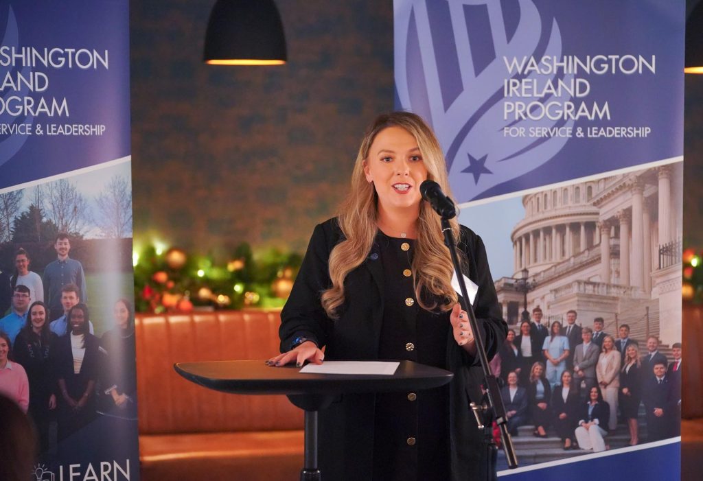 The evening was also an opportunity to recognize and appreciate the host families, work placements, and the entire supporter community. The speaking portion of the evening included remarks from the Director of the Northern Ireland Bureau Andrew Elliott, along with WIP Class of 2023 students Karl Duncan and Eimear Willet.