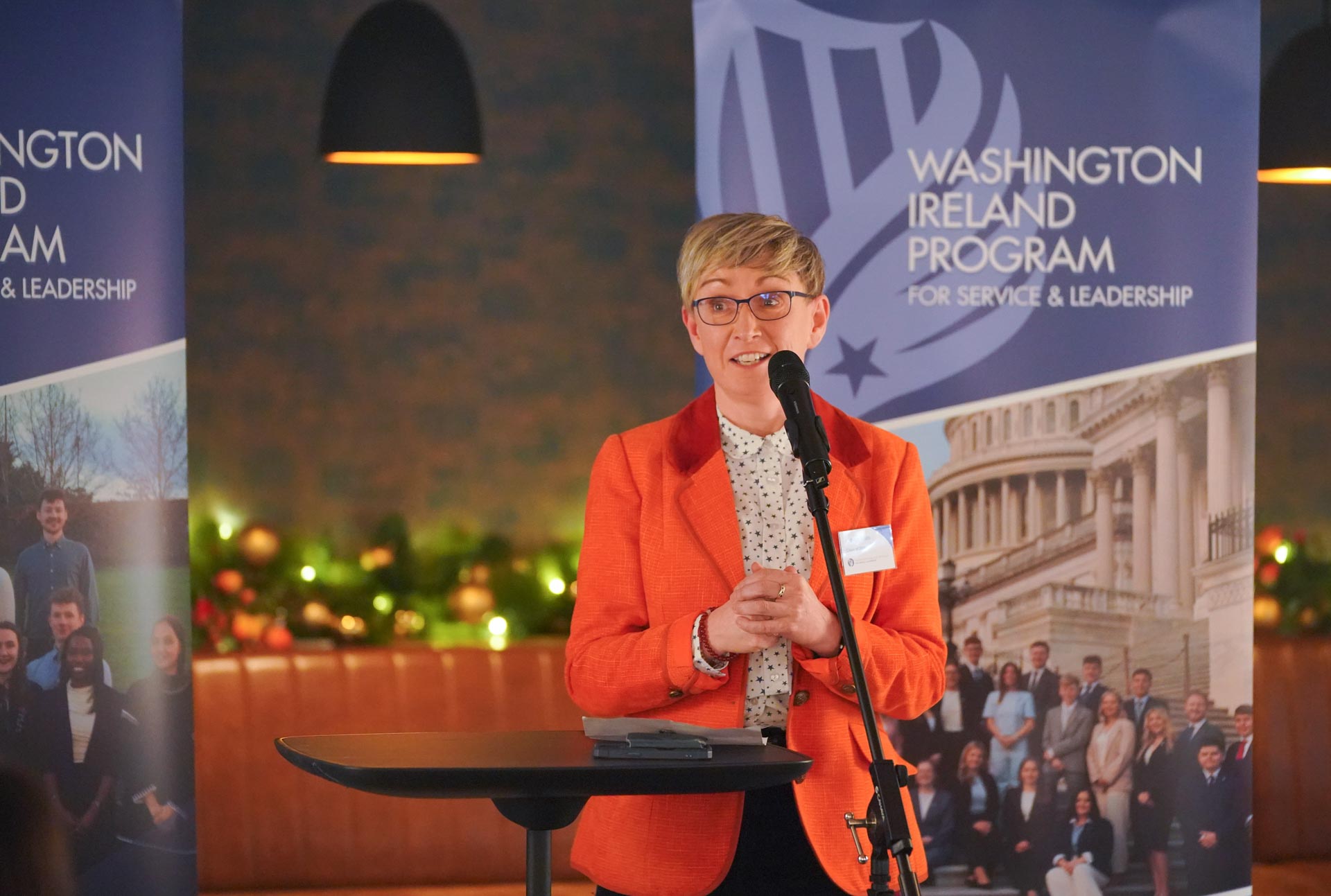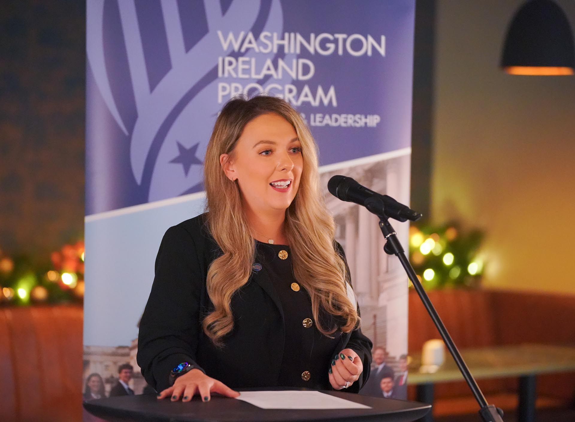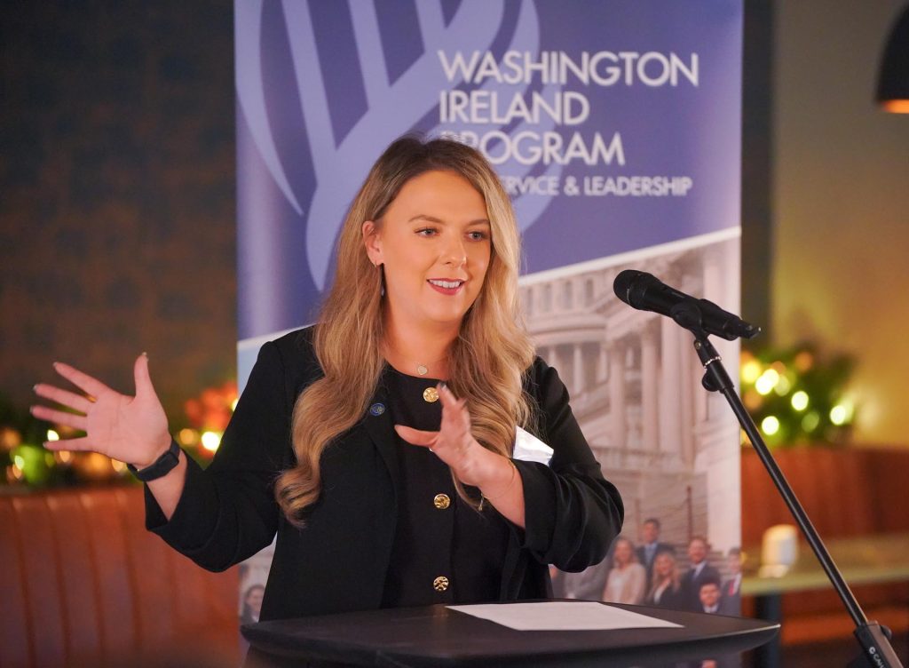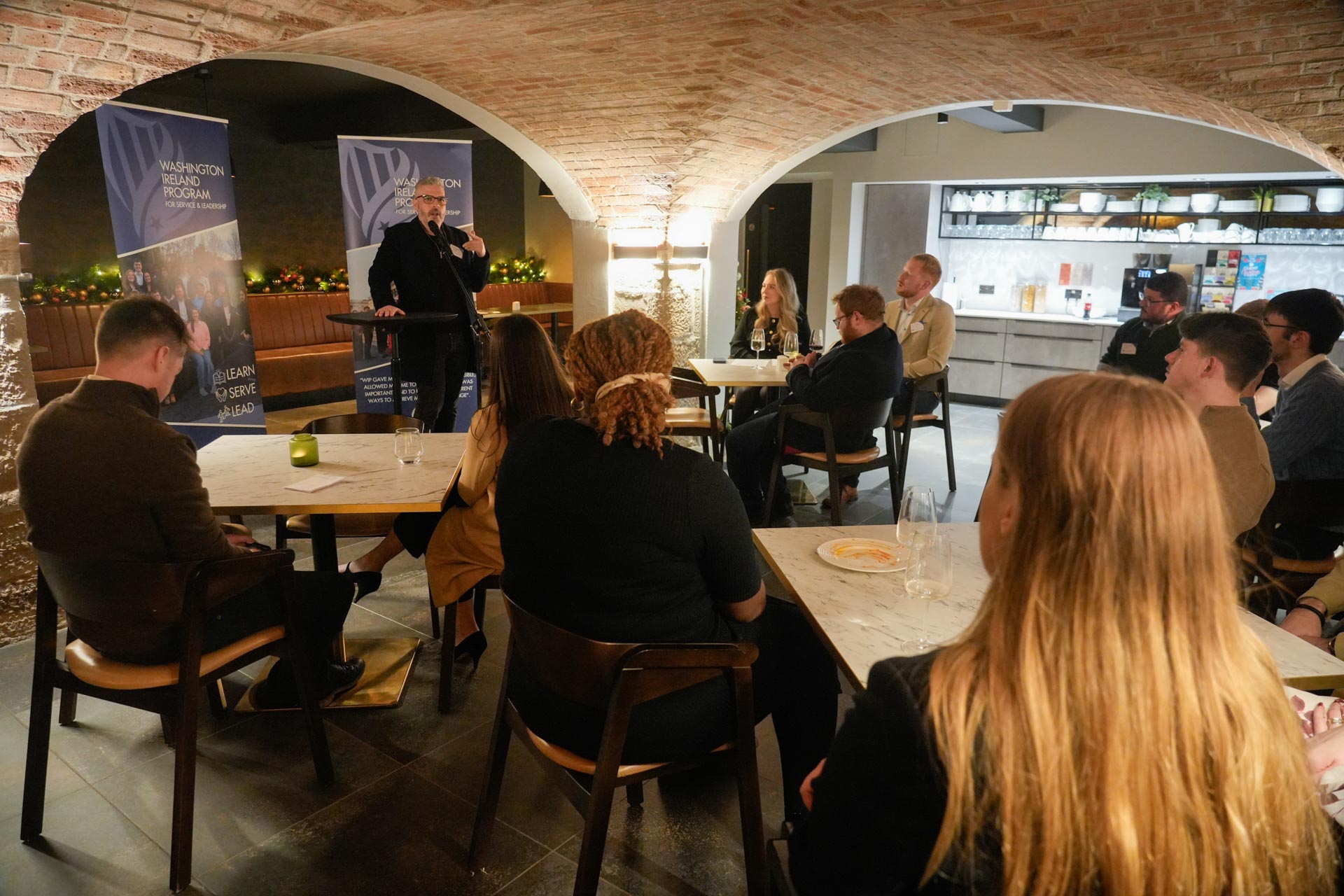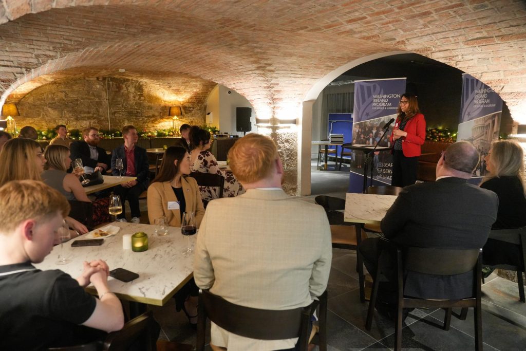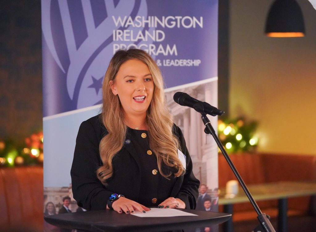 The evening was also an opportunity to recognize and appreciate the host families, work placements, and the entire supporter community. The speaking portion of the evening included remarks from the Director of the Northern Ireland Bureau Andrew Elliott, along with WIP Class of 2023 students Karl Duncan and Eimear Willet.