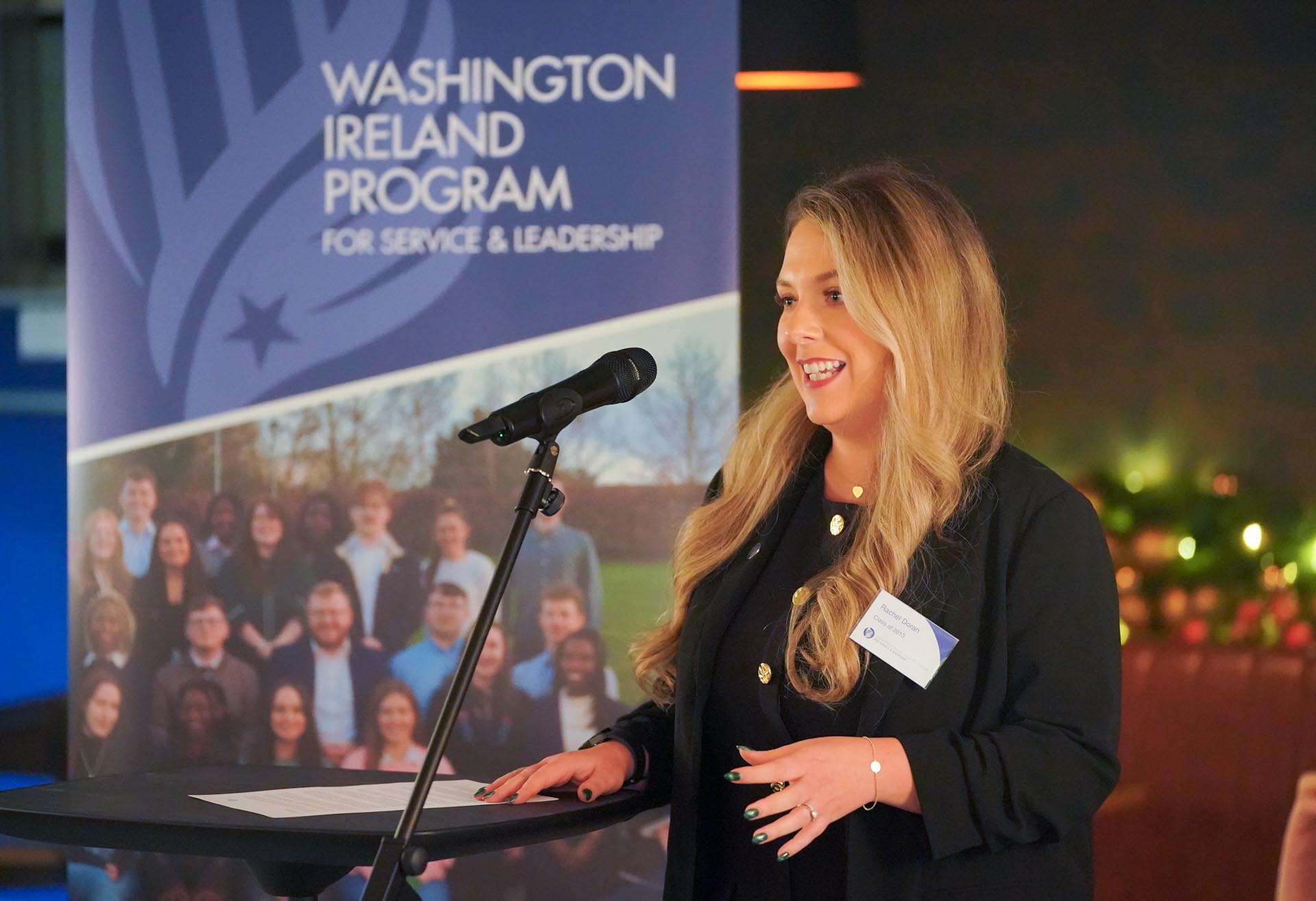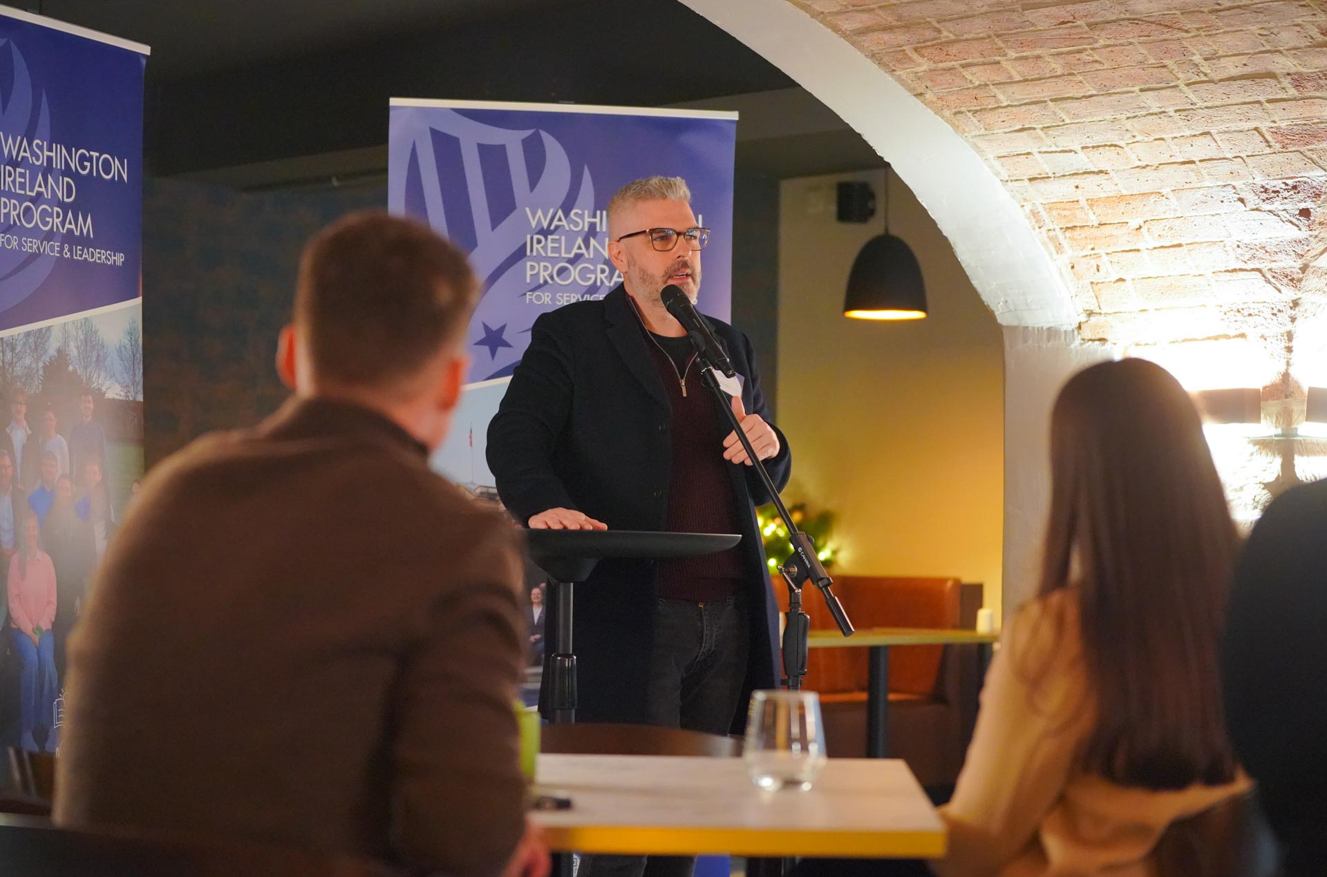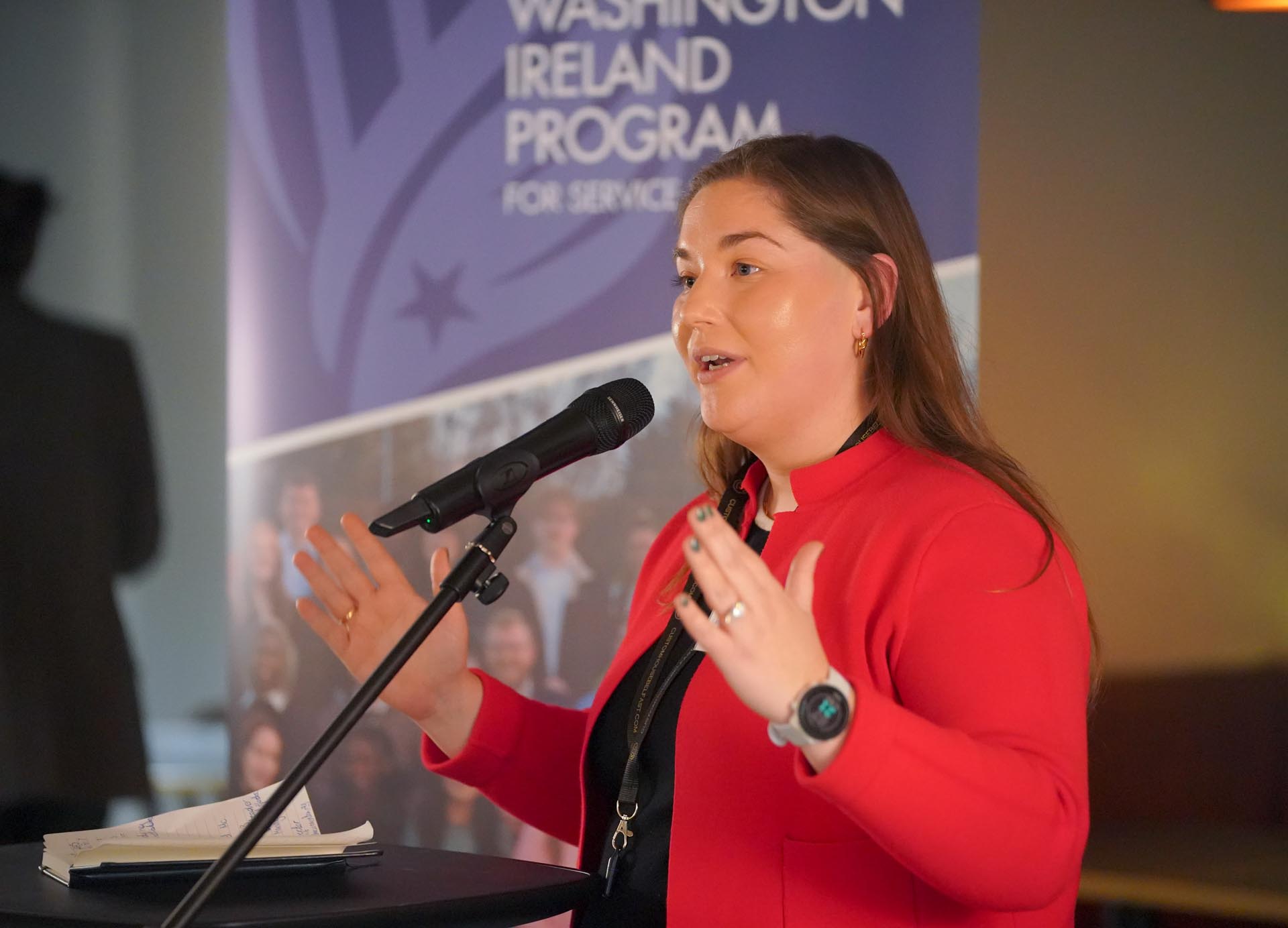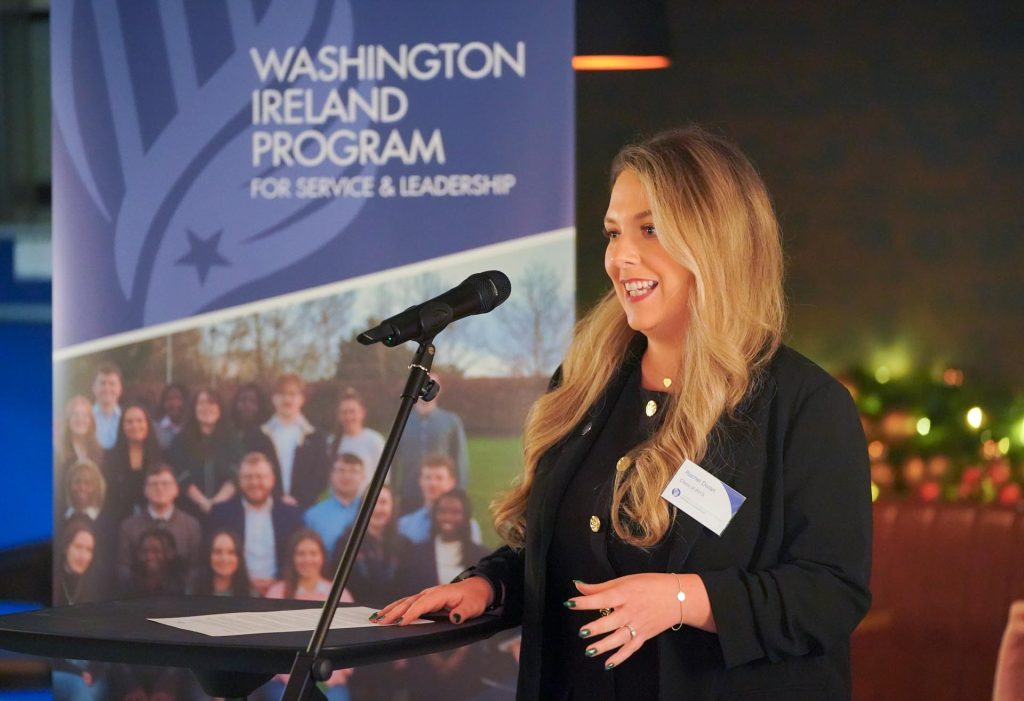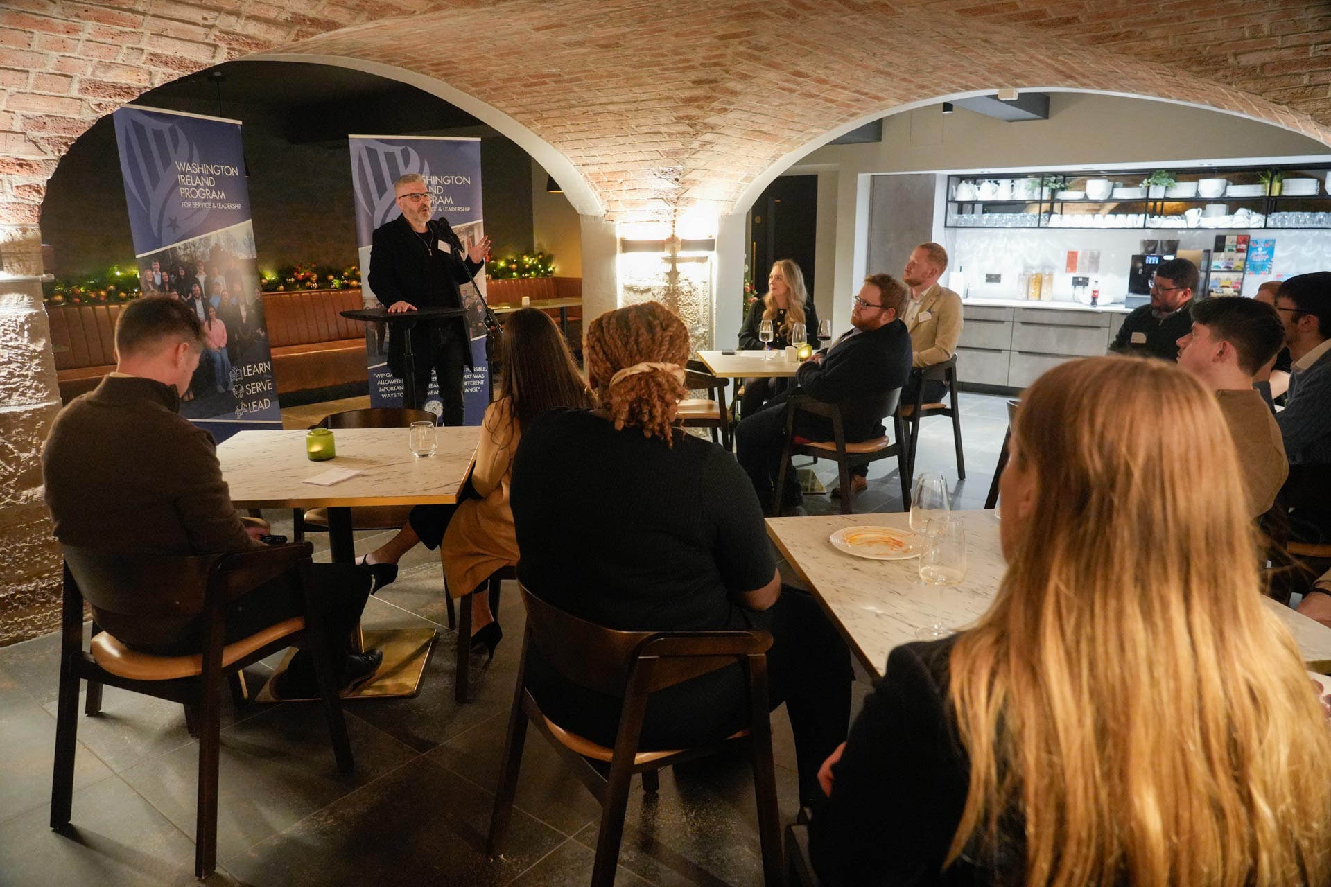 The evening was also an opportunity to recognize and appreciate the host families, work placements, and the entire supporter community. The speaking portion of the evening included remarks from the Director of the Northern Ireland Bureau Andrew Elliott, along with WIP Class of 2023 students Karl Duncan and Eimear Willet.