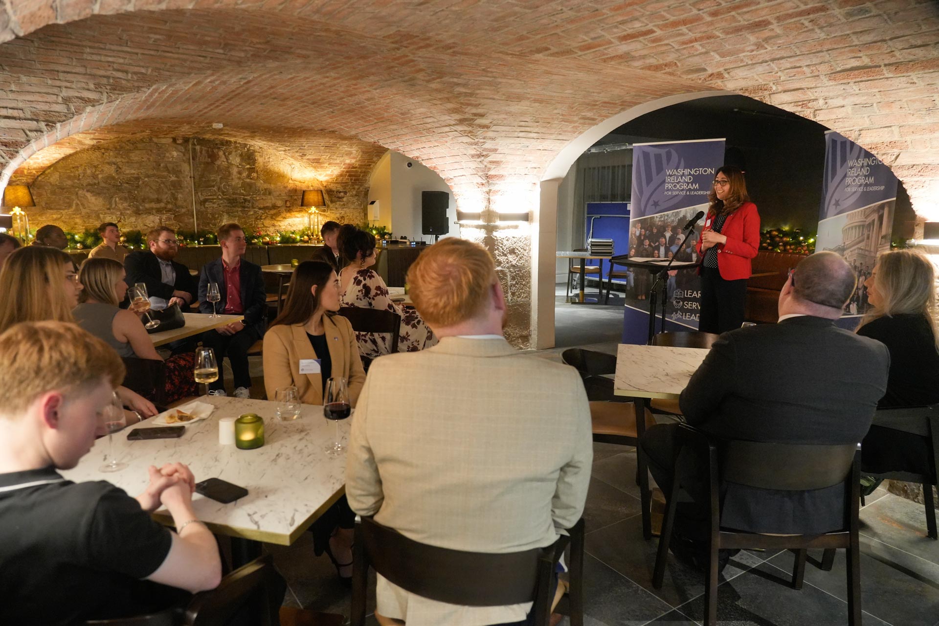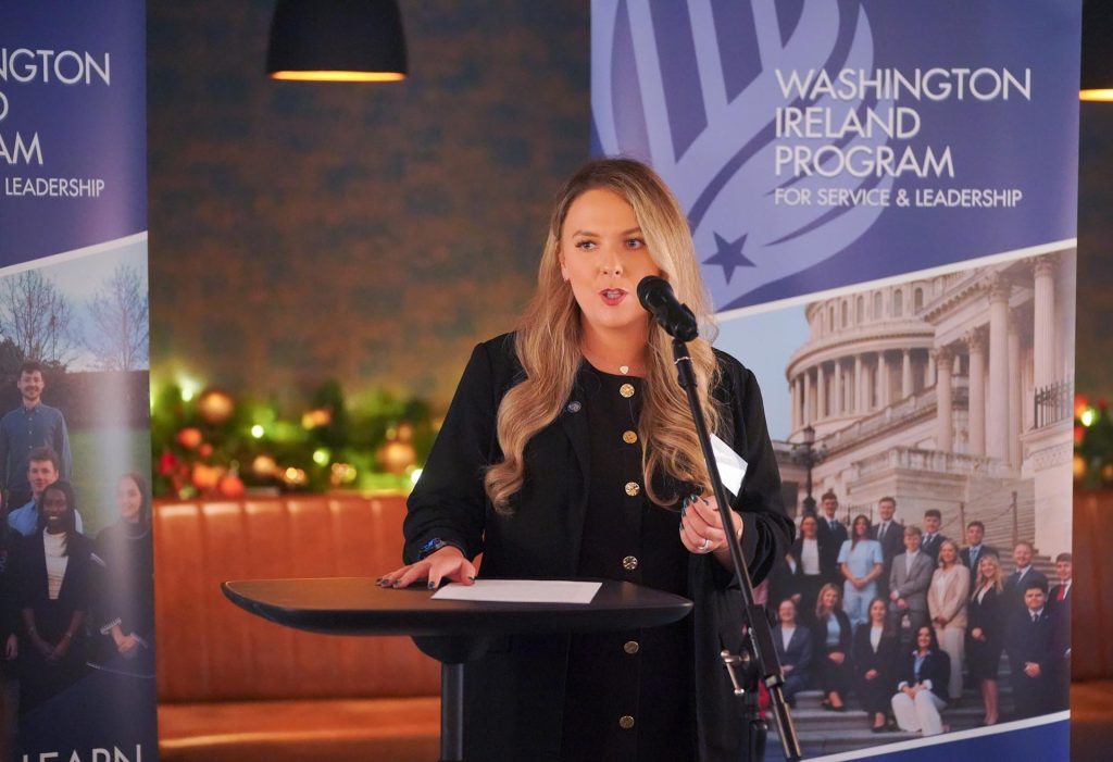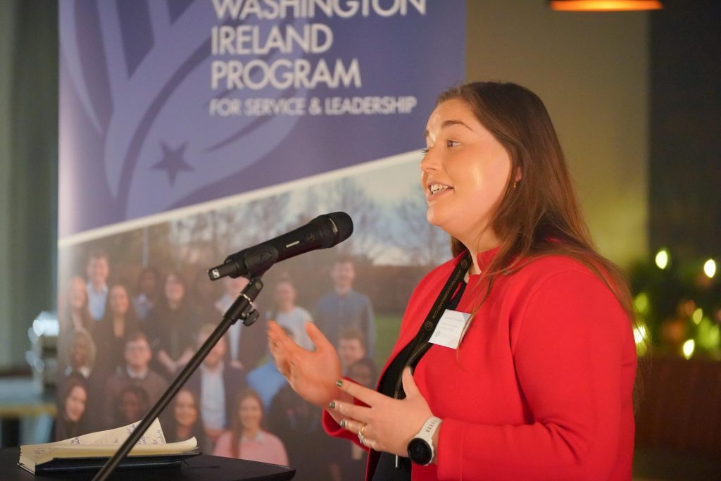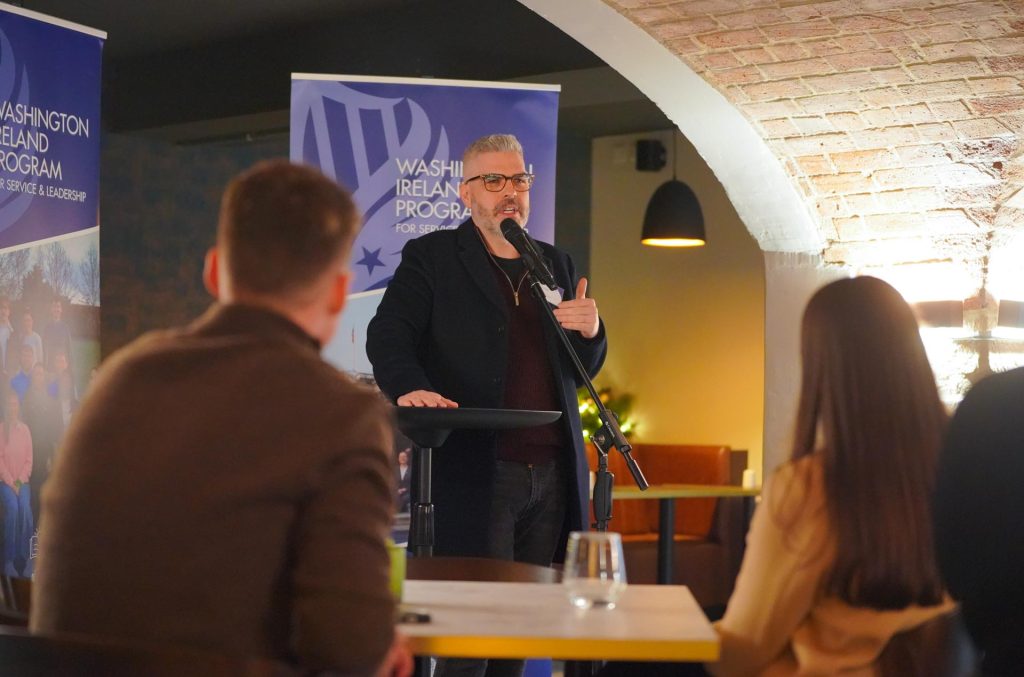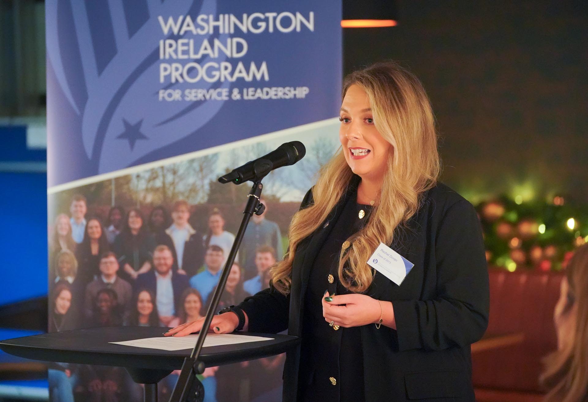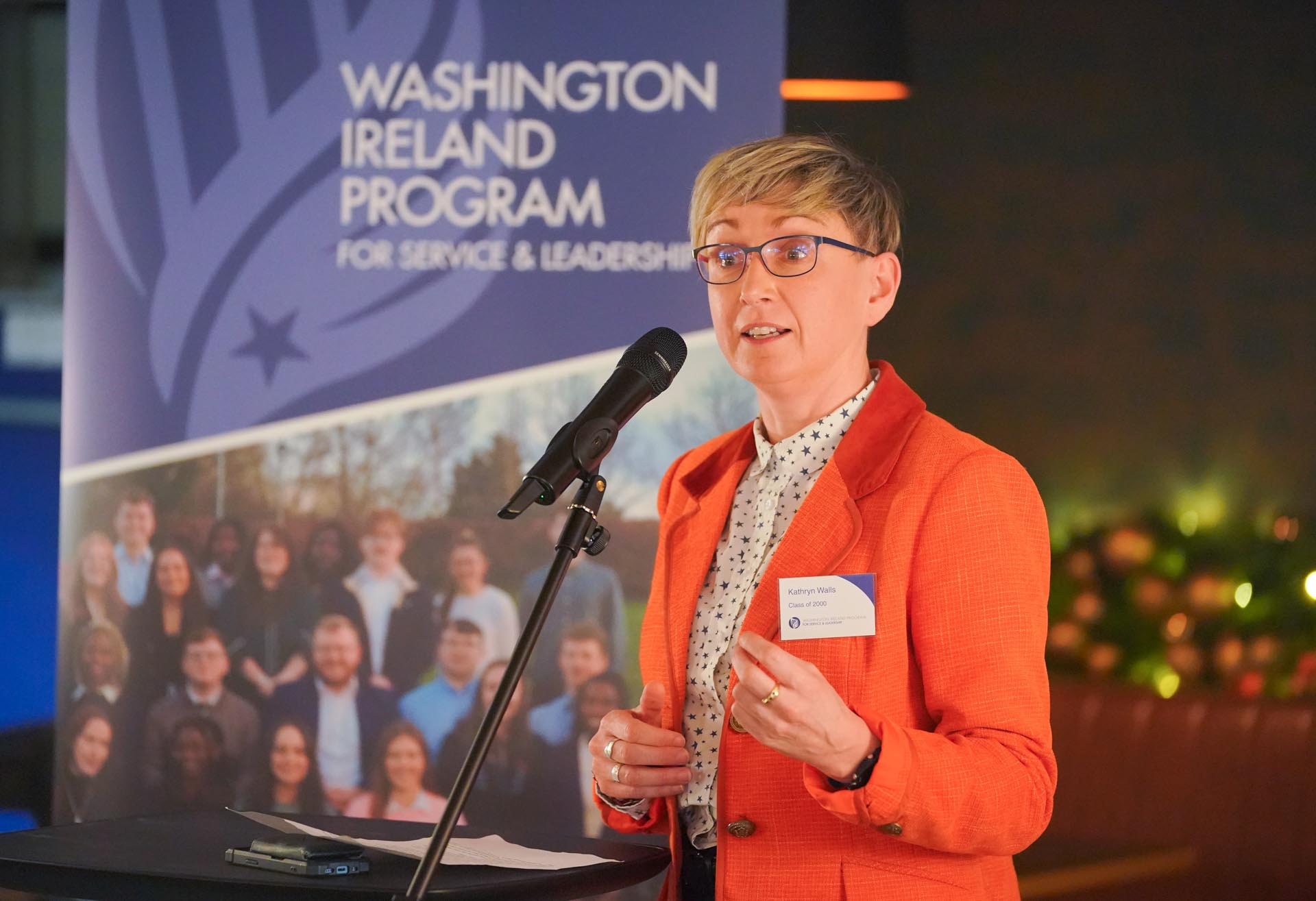 The evening was also an opportunity to recognize and appreciate the host families, work placements, and the entire supporter community. The speaking portion of the evening included remarks from the Director of the Northern Ireland Bureau Andrew Elliott, along with WIP Class of 2023 students Karl Duncan and Eimear Willet.
