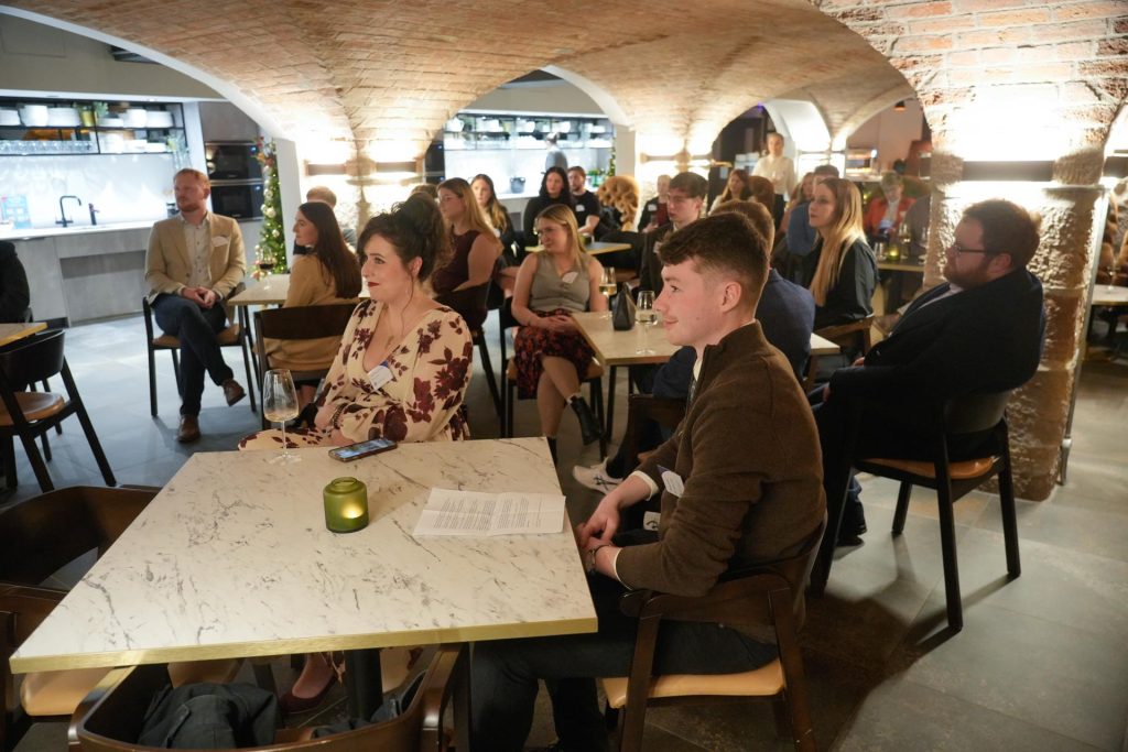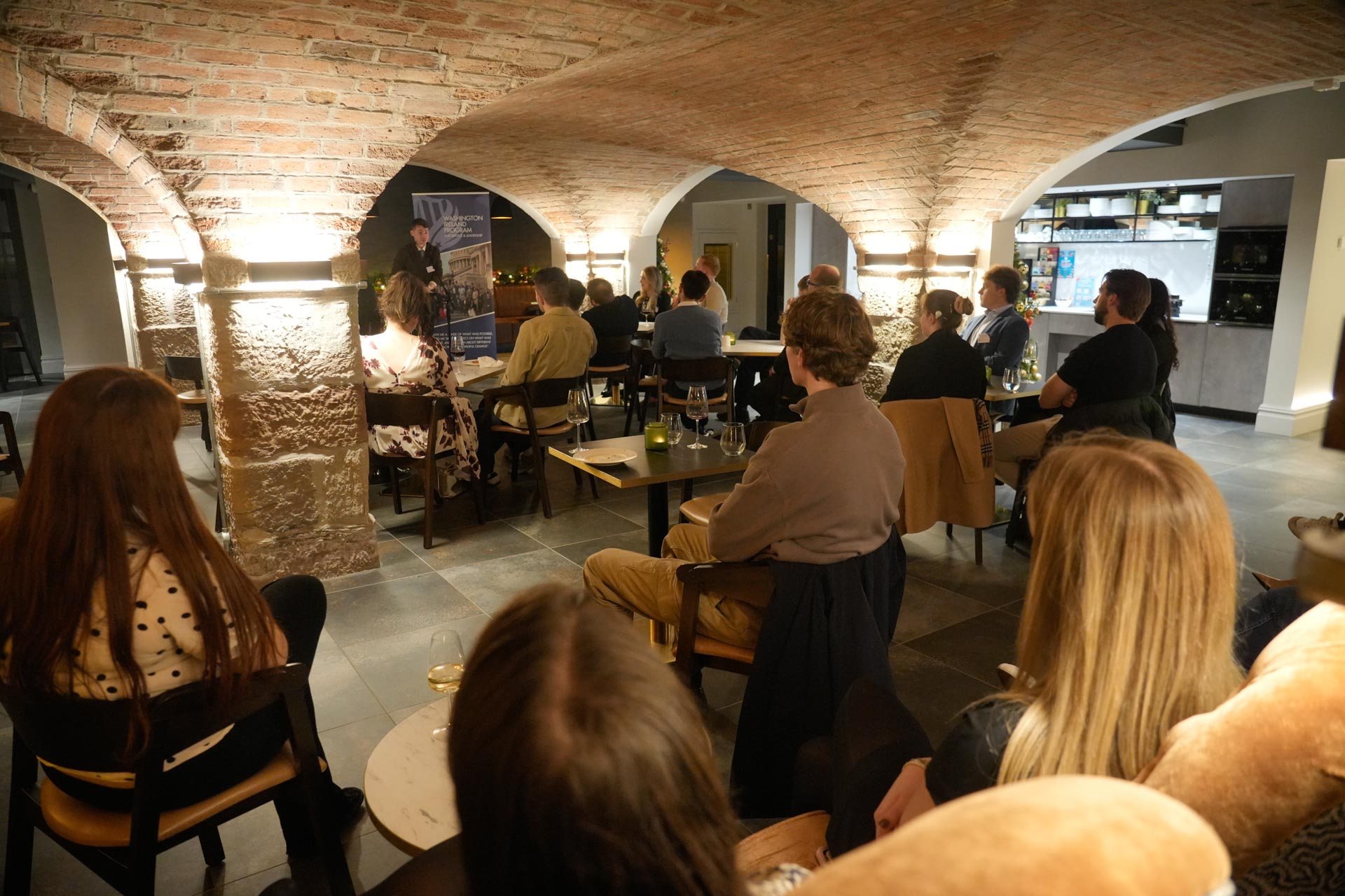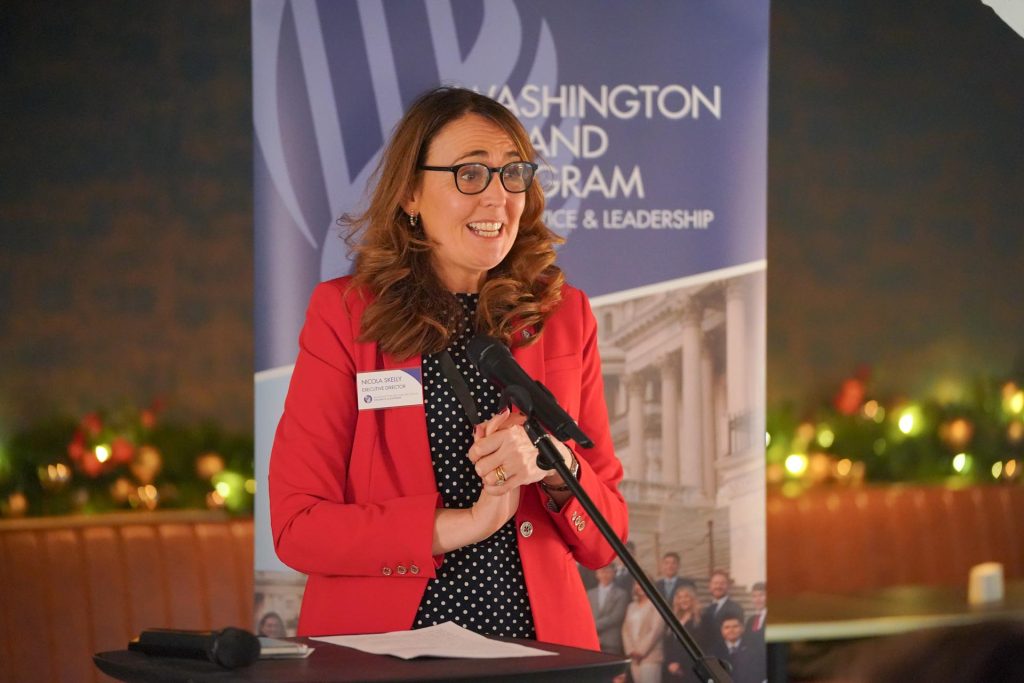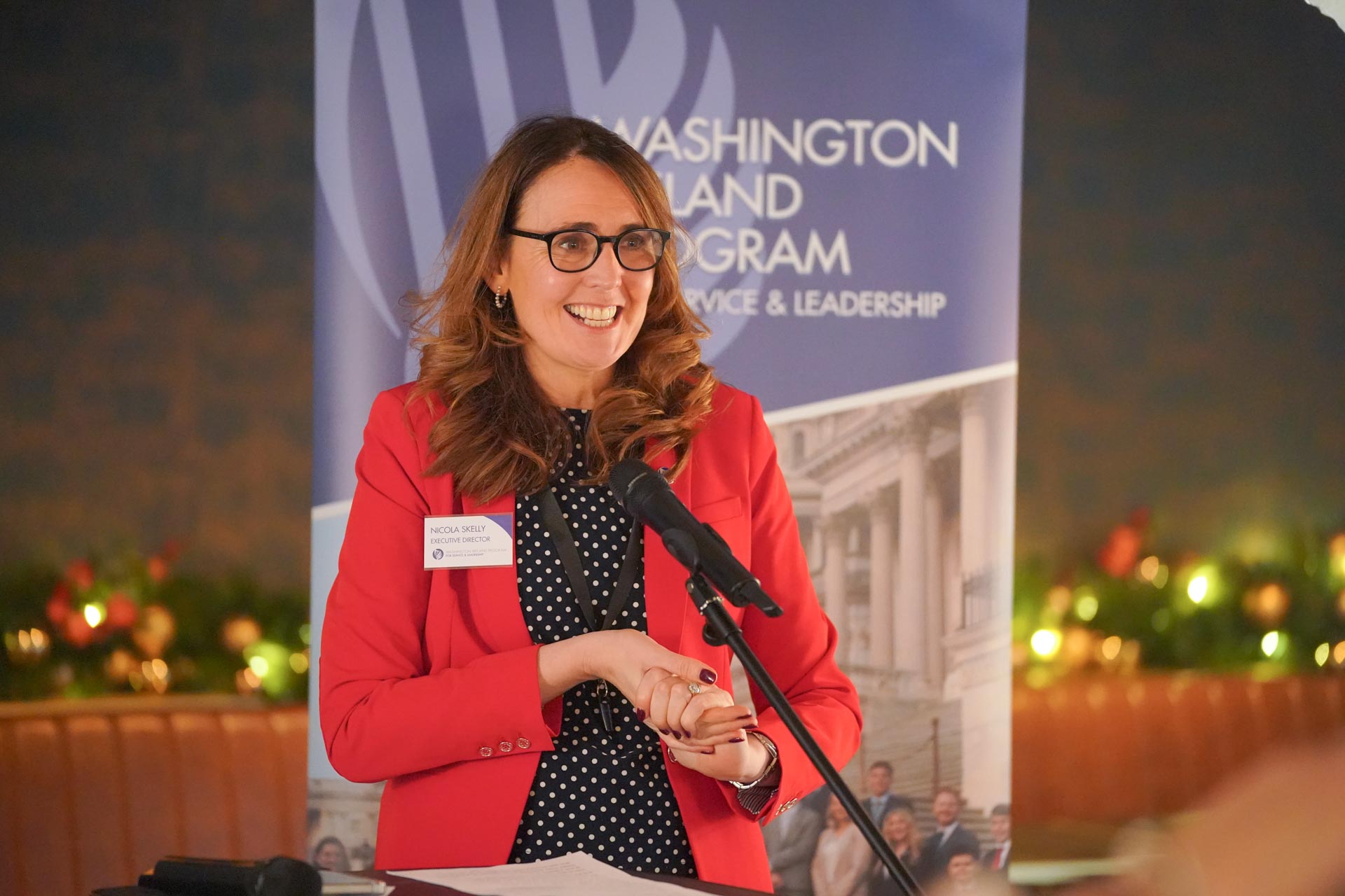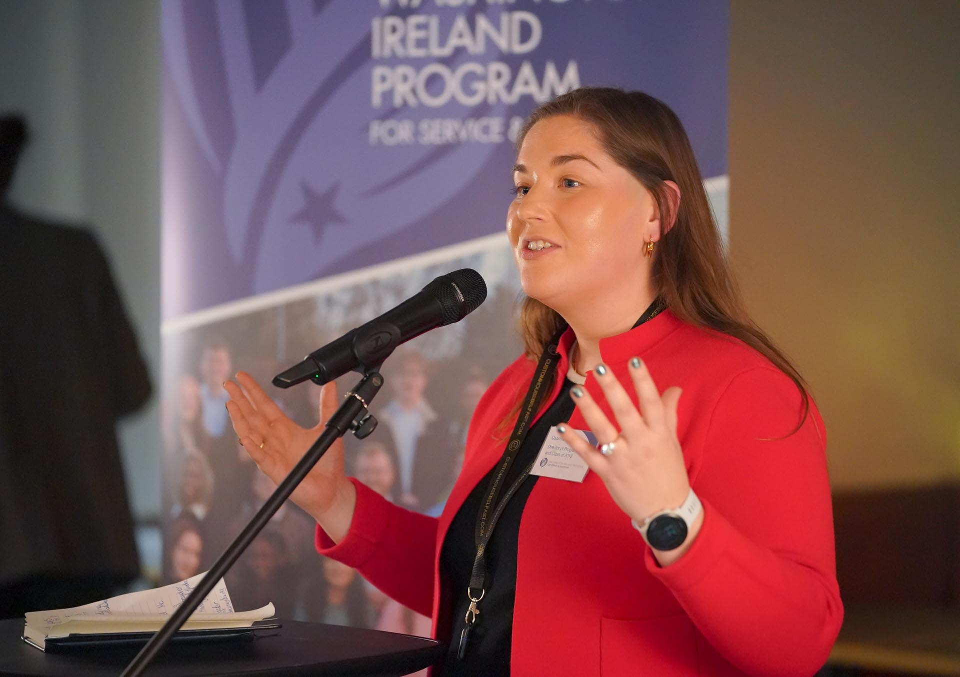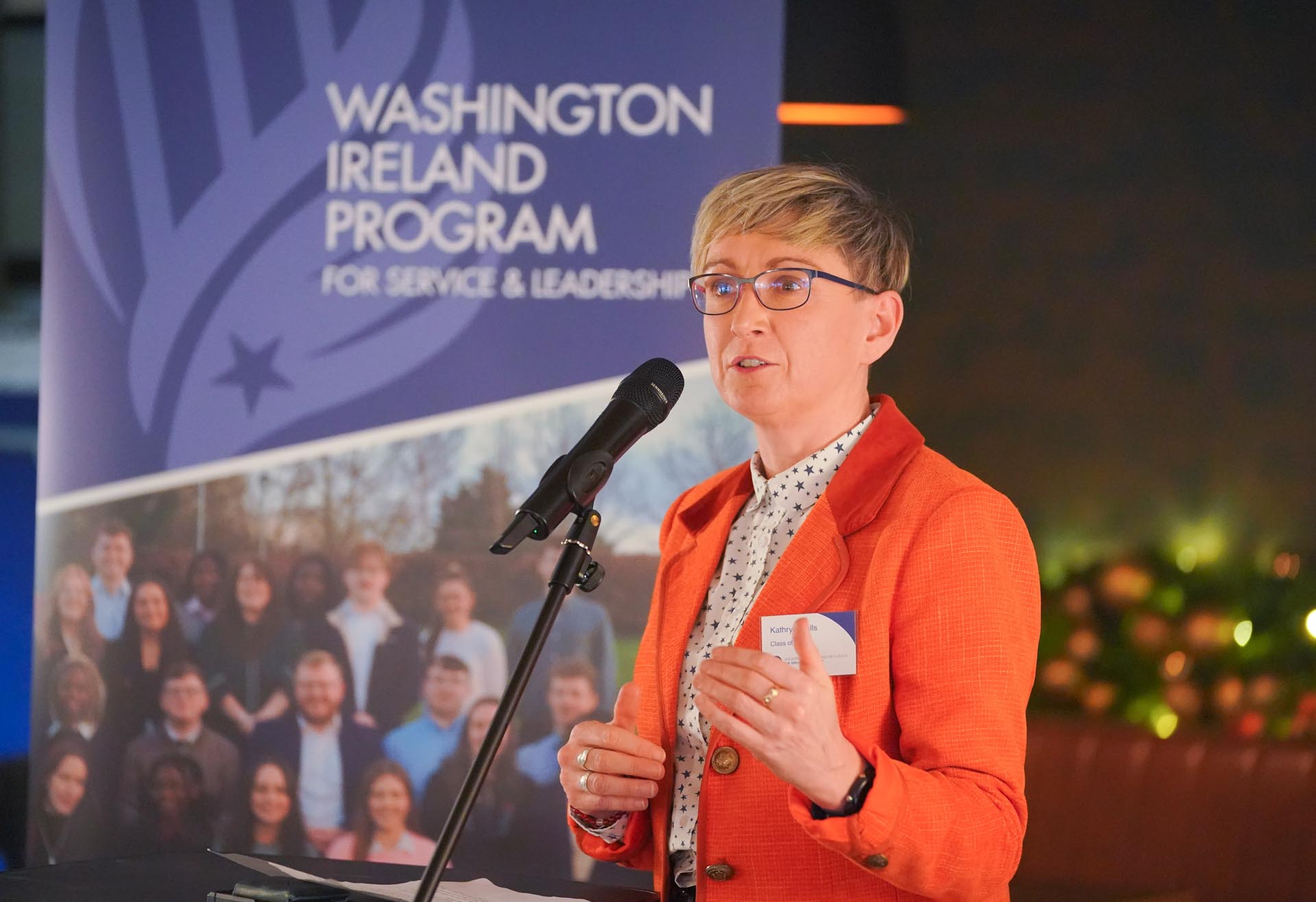 The evening was also an opportunity to recognize and appreciate the host families, work placements, and the entire supporter community. The speaking portion of the evening included remarks from the Director of the Northern Ireland Bureau Andrew Elliott, along with WIP Class of 2023 students Karl Duncan and Eimear Willet.