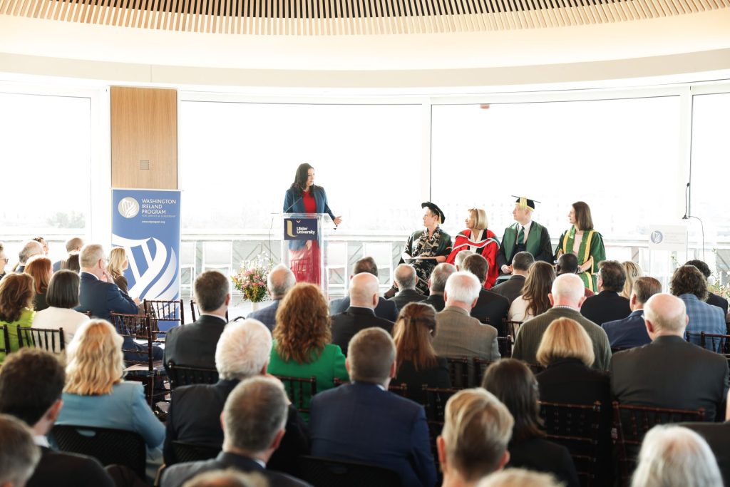 “It is an incredible privilege to accept this honorary doctorate in recognition of the Washington Ireland Program’s journey over the past 31 years. What began as a small initiative to foster peace and reconciliation has now grown into an impactful network of over one thousand alumni who are shaping the future of Ireland and Northern Ireland. The honor I have received is not just a reflection of the work of one individual, but of the support and dedication shown by our staff and volunteers, our work placements, host families, donors, governmental supporters, and — most importantly — our program participants who have helped build and shape WIP throughout its history.”
