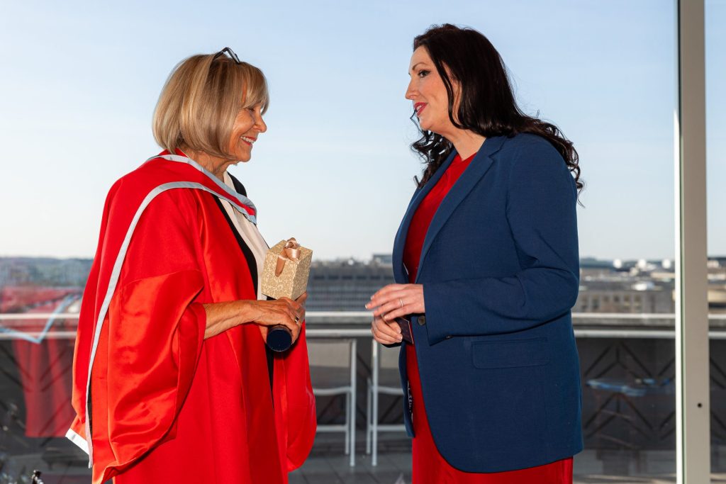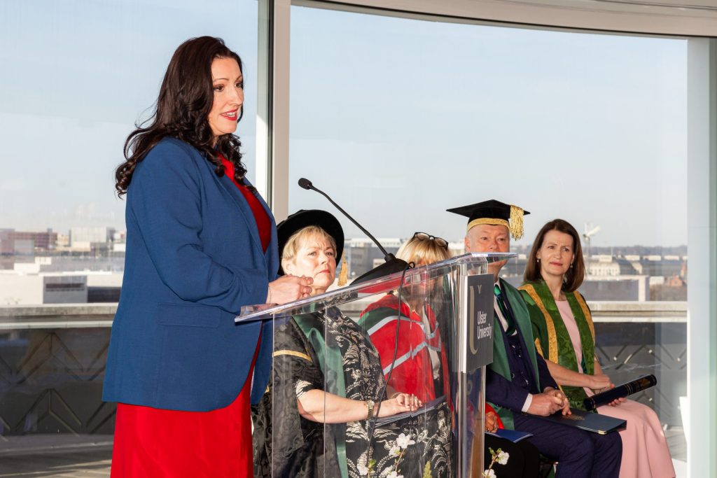 A highlight of the event was the recognition of WIP Founder Carol Wheeler, who was conferred with an Honorary Doctorate from Ulster University in recognition of her outstanding contributions to peace and reconciliation. The award, ‘Doctor of the University,’ is the highest accolade Ulster University can bestow and acknowledges Carol’s tireless work in fostering leadership and cross-community understanding over the past three decades. Ulster University, recently named the UK and Ireland University of the Year (Times Higher Education 2024), continues to be a key partner in WIP’s mission.