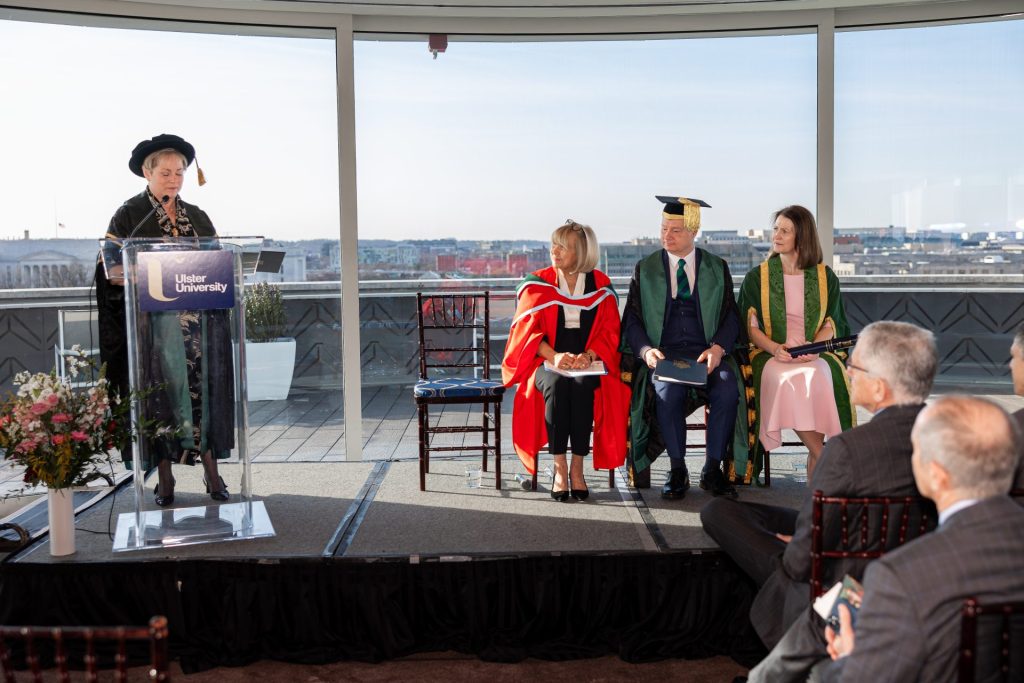 “Dr. Carol Wheeler’s dedication to leadership development and civic engagement has had a profound and lasting impact on young people from Northern Ireland and Ireland. Through the Washington-Ireland Program, she has provided opportunities that empower individuals to build a more peaceful and prosperous future, something that we at Ulster take inspiration from. Ulster University is delighted to recognize Carol’s legacy with this honorary degree.”